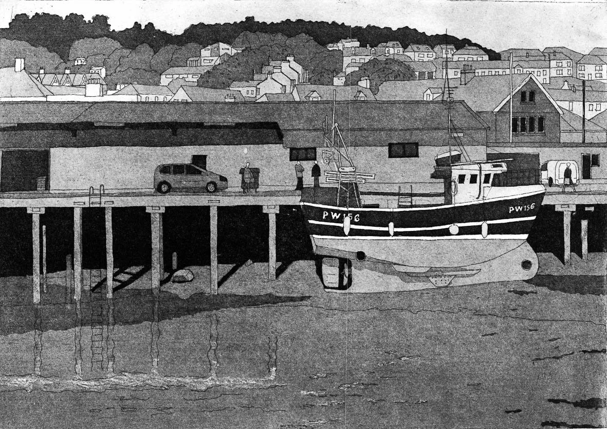 Formerly an architect, Andrew learned his printmaking skills at John Howard’s studio in Penr yn. He has been producing etching/aquatints for over a decade, depicting interesting places and landscapes in West Cornwall and Derbyshire.