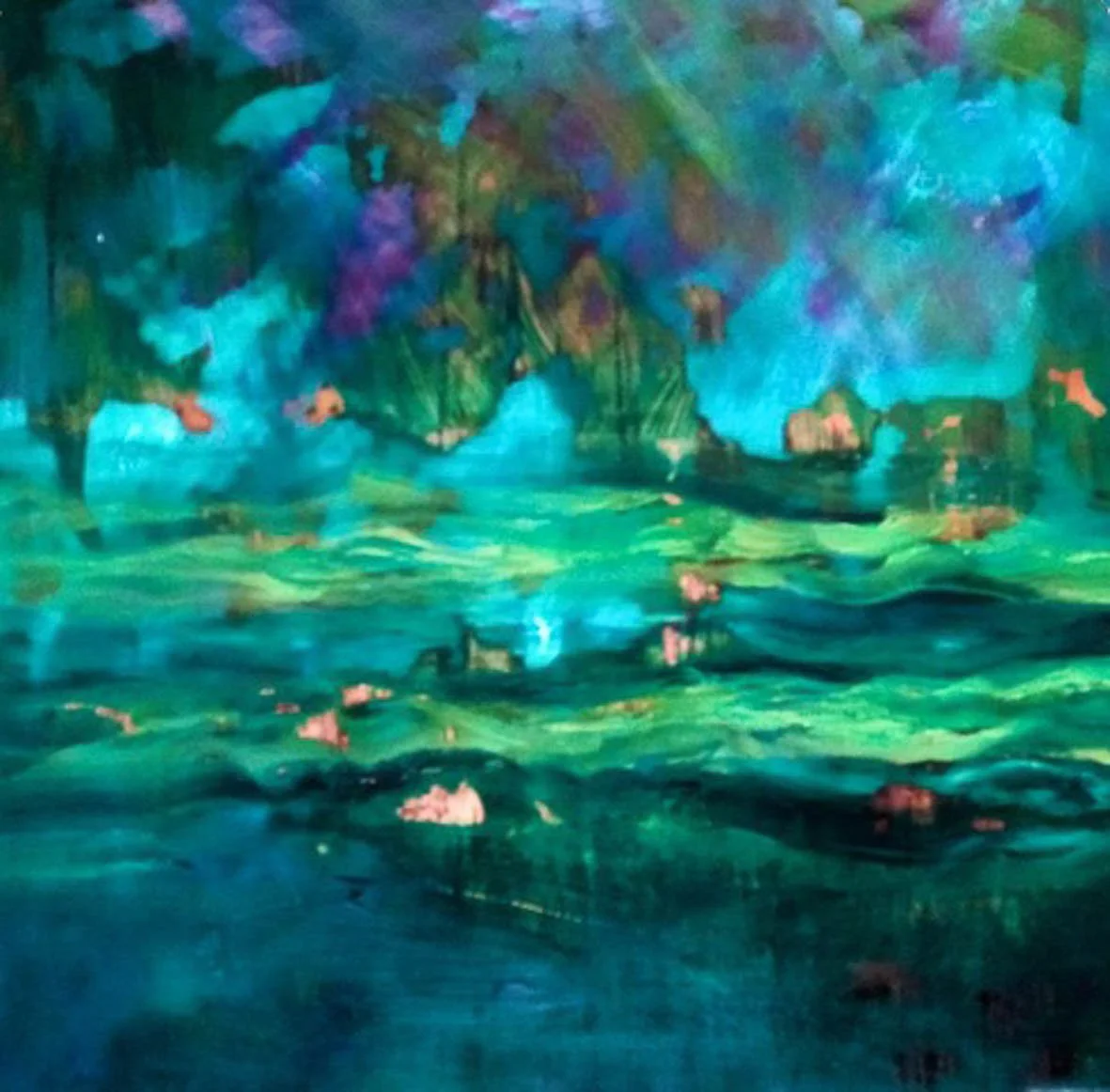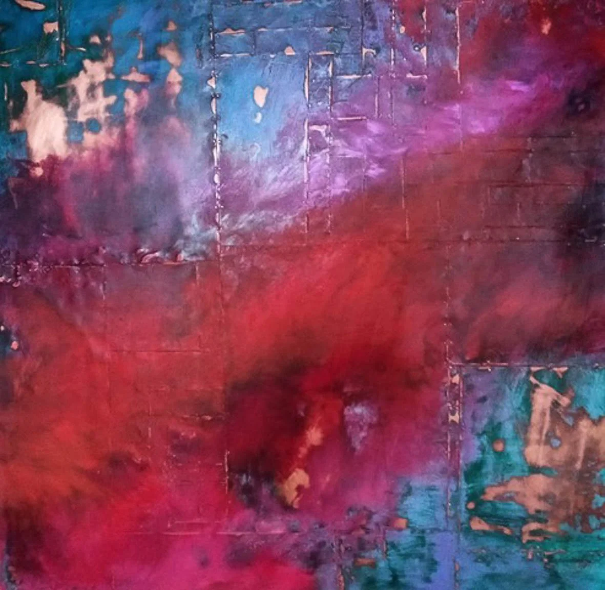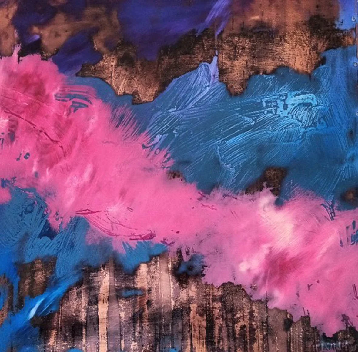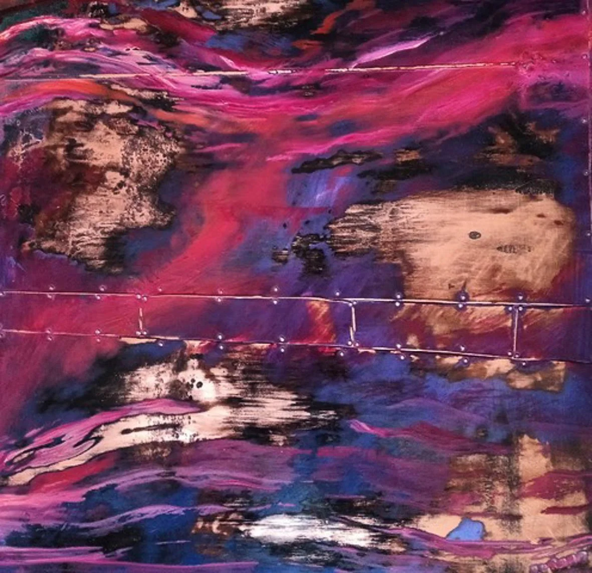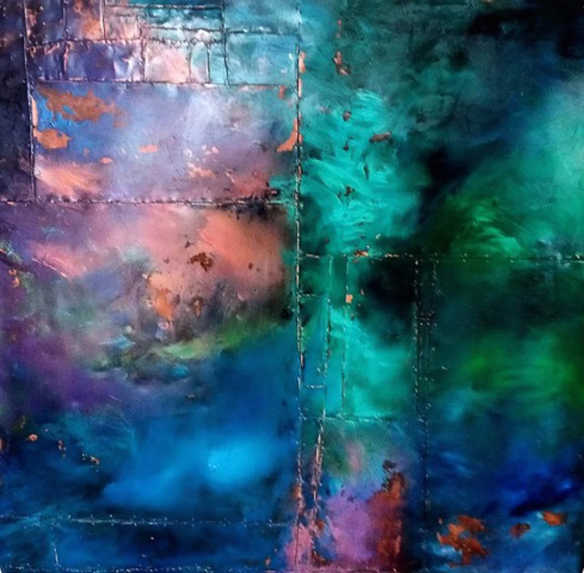 My work is a resting place and somewhere to play with colour and texture without having to have an agenda. The intense glossiness of oil paint is worked into panels made of reclaimed copper, often with the marks of the coppers past life left behind.