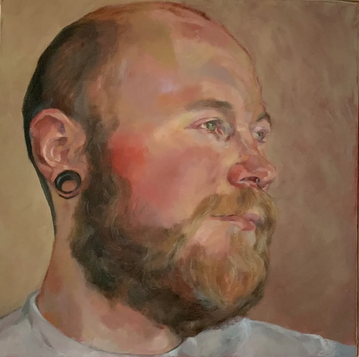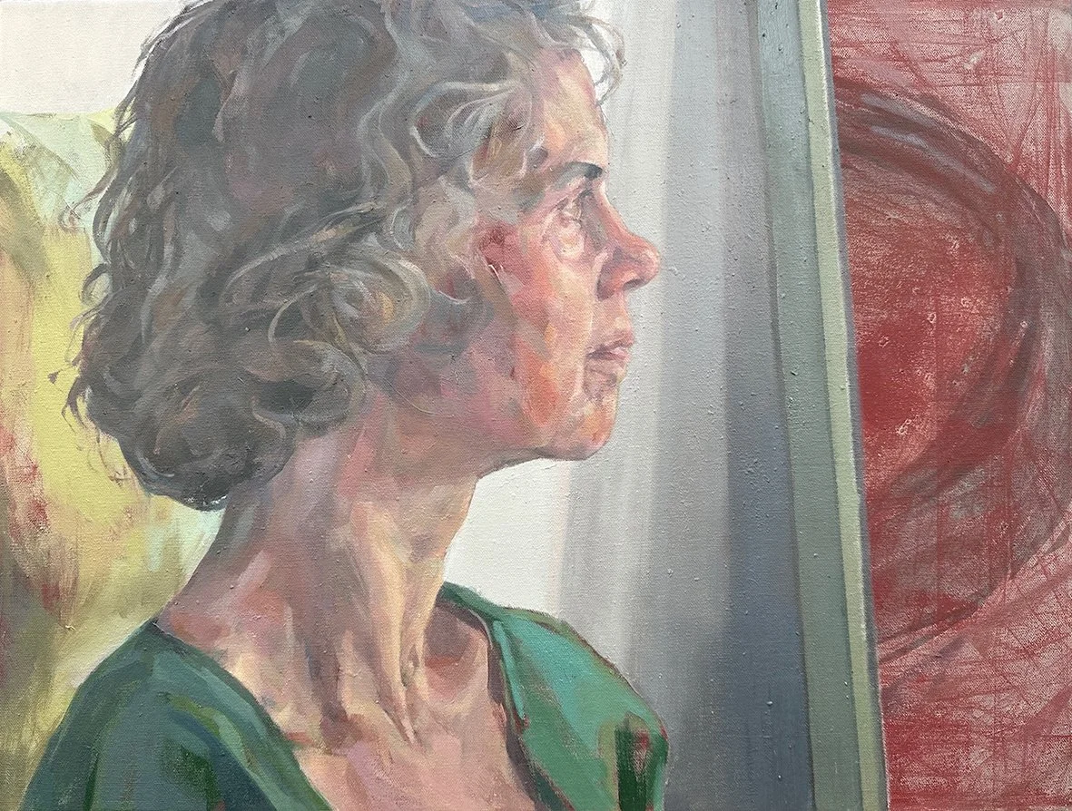 She paints portrait commissions primarily from life, in oils, focusing on the face, working to capture the essence of her sitter.
